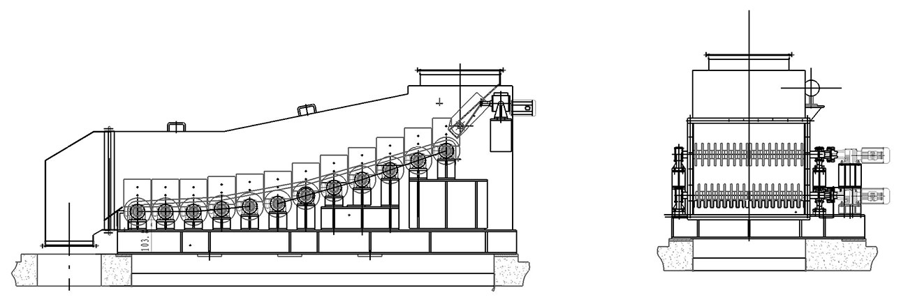 石家莊永興機(jī)械生產(chǎn)的GZS滾軸篩是鍋爐燃煤系統(tǒng)和煤礦選煤系統(tǒng)的重要設(shè)備之一,在冶金、化工、建材、煤炭系統(tǒng)均可廣為使用,深受擁護(hù)好評(píng)。 GZS滾軸篩的篩面由很多根平行排列的、其上交錯(cuò)地裝有篩盤的輥軸組成,滾軸通過鏈輪或齒輪傳動(dòng)而旋轉(zhuǎn),其轉(zhuǎn)動(dòng)方向與物料流動(dòng)方向相同。為了使篩上的物料層松動(dòng)以便于透篩,篩盤形狀有偏心的和異形的。為防止物料卡住篩軸,裝有保險(xiǎn)裝置。